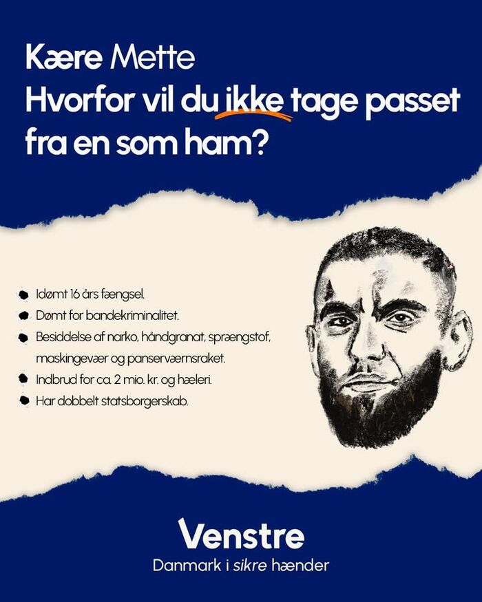 Kære Mette, hvorfor vil du ikke tage passet fra typer som Tarek Osman? Stem blåt på tirsdag, hvis du vil være sikker på, at typer som Tarek Osman bliver udvist af Danmark.