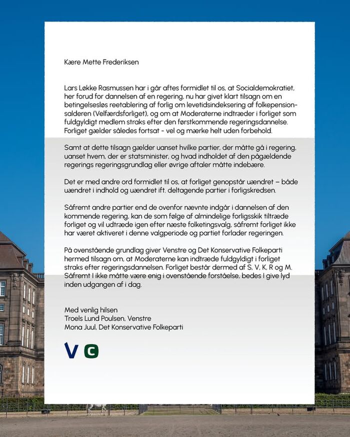 Kære alle Som I ved, har både Venstre og Det Konservative Folkeparti været til møder hos den kongelige undersøger. I den forbindelse er der en helt central oplysning, som vi gerne vil dele med jer,…
